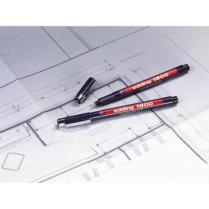 sonstiges: stabile, superfeine, metallgefasste Kunststoffspitze, Kappe mit Edelstahlclip, wasserfeste, lichtbeständige Pigmenttusche, geeignet für Reinzeichnungen, Skizzen, technische Zeichnungen und Arbeiten mit Schablonen