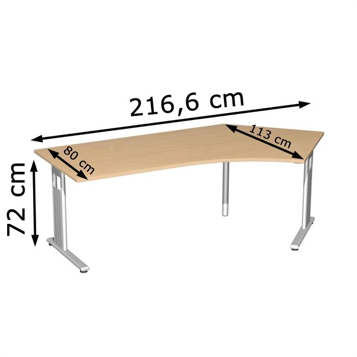 Maße: 216,6 x 72 x 80/113 cm (BxHxT)