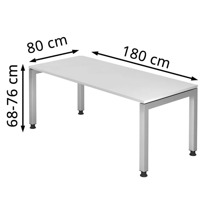 sonstiges: schwebende Tischplatte mit 8 mm Abstand, stufenlos höhenverstellbar über Sockelfüße, strapazierfähige, melaminharzbeschichtete E1-Qualitäts-Spanplatte (nach DIN 68765), hochwertige 2 mm starke und abgerundete ABS-Kanten