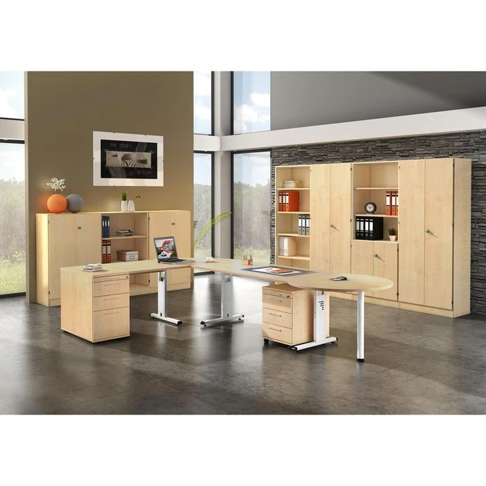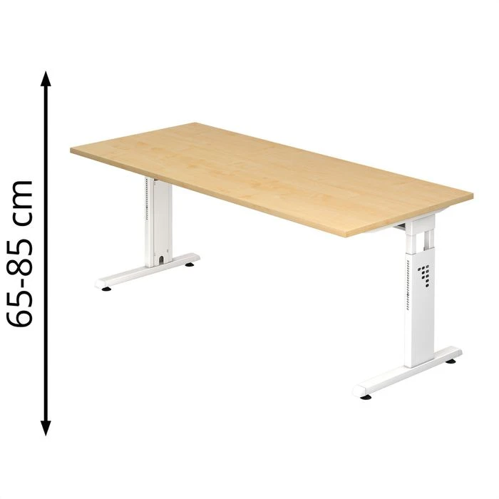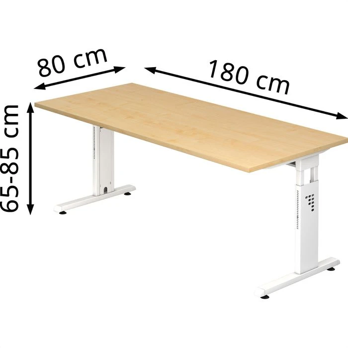 sonstiges: vertikaler Kabelführung in Seitenblenden, Höhenverstellung durch Rasterbohrung, strapazierfähige, melaminharzbeschichtete E1-Qualitäts-Spanplatte (nach DIN 68765), hochwertige 2 mm starke und abgerundete ABS-Kanten
