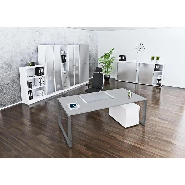 sonstiges: schwebende Tischplattenoptik, Höhenverstellung durch Rasterbohrung, strapazierfähige, melaminharzbeschichtete E1-Qualitäts-Spanplatte (nach DIN 68765), hochwertige 2 mm starke und abgerundete ABS-Kanten