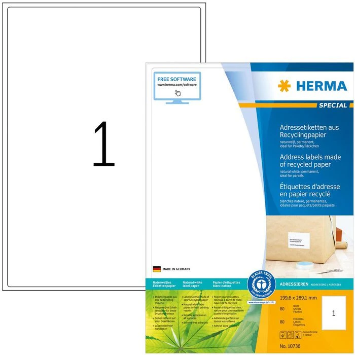 Ausführung: selbstklebend, bedruckbar, Recycling