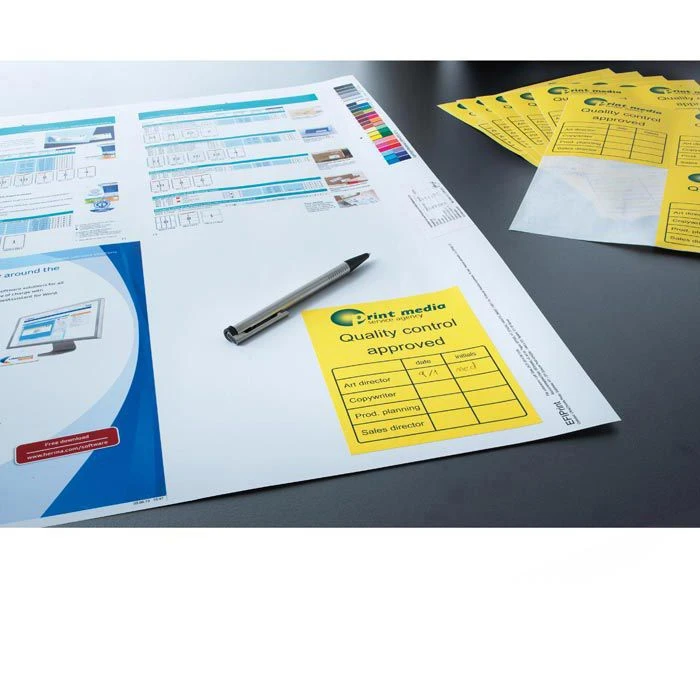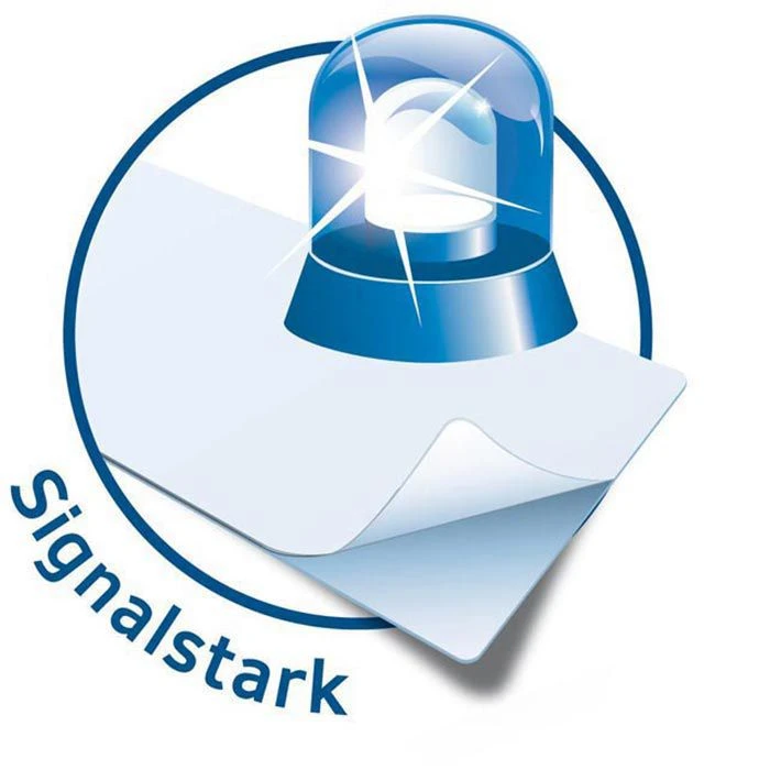 sonstiges: selbstklebend, schnittgestanzt, ohne Rand, aus chlorfrei gebleichten Papier, Signalstark