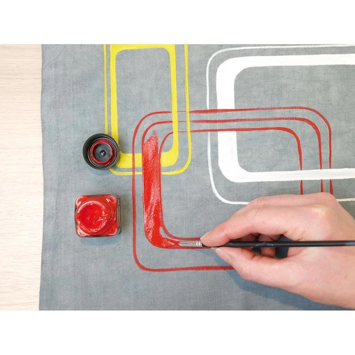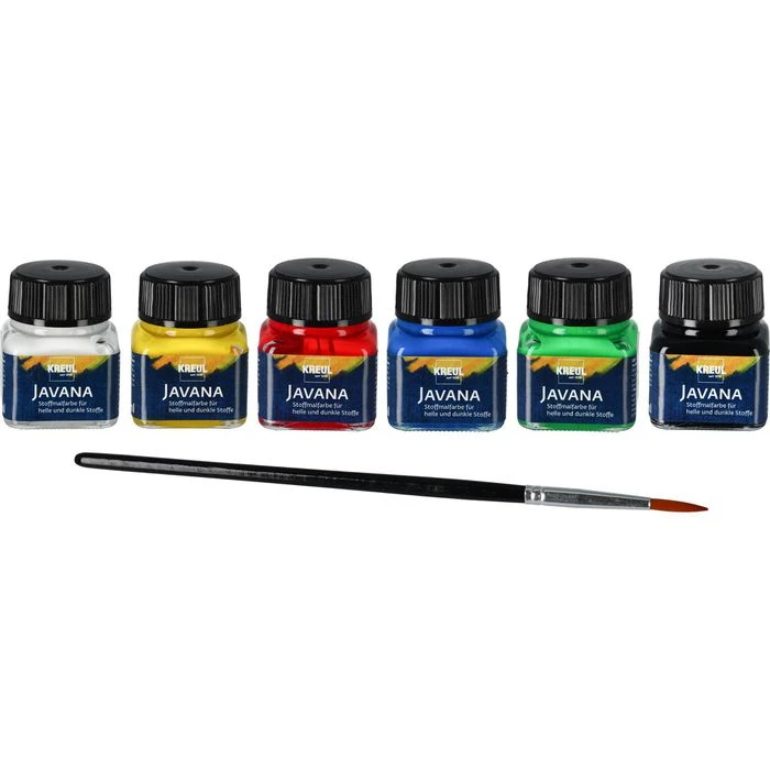 sonstiges: zum Bemalen von hellen und dunklen Textilien (Jeans, Taschen, Kissen, Servietten, T-Shirts etc.), für verschiedene Techniken geeignet, wie Malen, Sieb-und Stempeldruck, Airbrush und Schabloniertechnik, untereinander mischbar, verdünnbar, farbkräftig und lichtecht, weich im Stoff, waschbeständig bis 40°C, Fixierung durch Bügeln oder Trocknen an der Luft