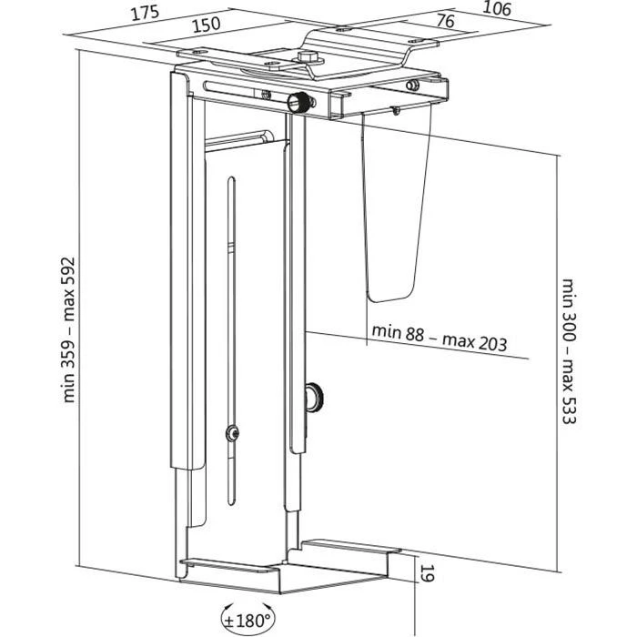 • Höhen- und breitenverstellbare Halterung