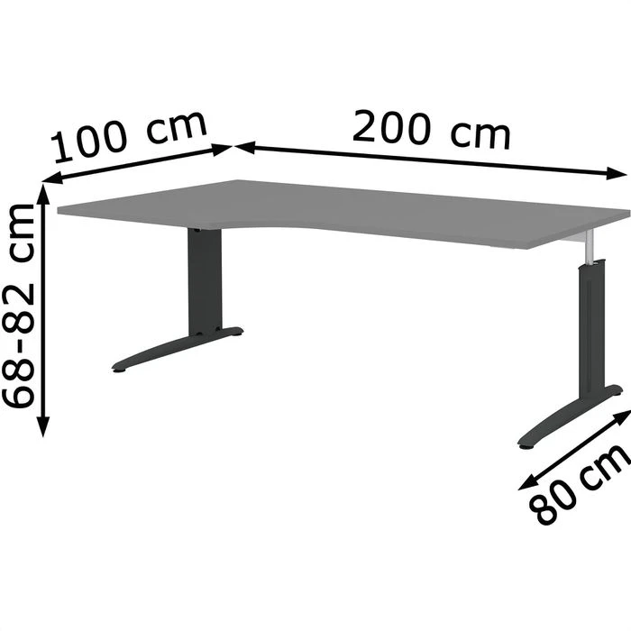 Maße: 200 x 68-82 x 80/100 cm (BxHxT)