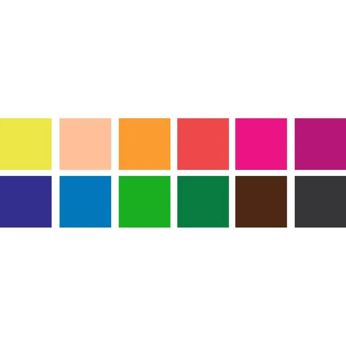 Farbvarianten: lichtgelb, rot, rotlila, lichtblau, grün, van-Dyke-braun, fleischfarben, orange, magenta, blau, gelbgrün, schwarz