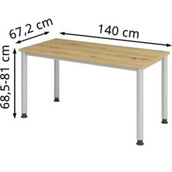 Hammerbacher Schreibtisch H-Serie, Asteiche, Verstellbar, 140 X 68,5-81 X 67,2cm, Mini Office