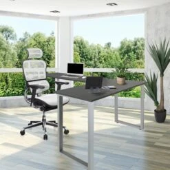 HJh-OFFICE Schreibtisch Castor, 673420, Nussbaum, Mit Standcontainer, 151,2 X 143,4cm, L-Form