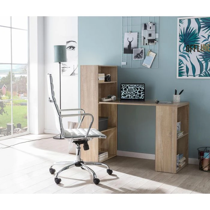 sonstiges: Tischplattenhöhe 76 cm, 5 Regalfächer mit 3 dreifach höhenverstellbaren Fachböden, strapazierfähige, melaminharzbeschichtete Spanplatten