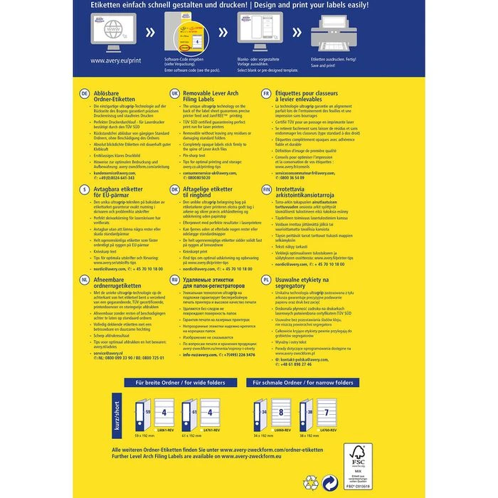 sonstiges: schnittgestanzt, umlaufender Rand, abgerundete Ecken, blickdicht – kein Durchscheinen der alten Beschriftung, gestochen scharfes Druckbild ohne Verwischen, garantiert staufreier Druckerdurchlauf und präziser Einzug, bei Bedarf rückstandsfrei ablösbar